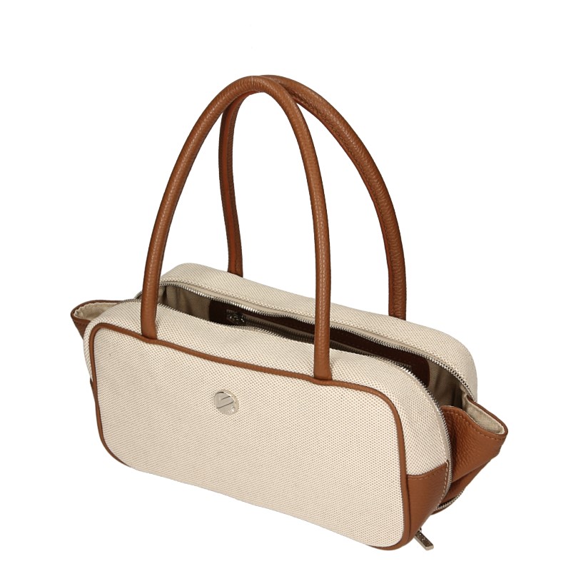 Il bauletto allungato Lea B Large è la versione più capiente del modello Lea B, pensata per un utilizzo quotidiano pratico e raffinato. Realizzato in tessuto Panama 100% cotone, caratterizzato da una texture strutturata effetto sale e pepe, unisce resistenza e naturalità a un’estetica pulita e contemporanea. Le finiture in pelle martellata a contrasto valorizzano il design e definiscono il profilo della borsa con un tocco deciso. La sua forma a bauletto allungato, proposta in dimensioni più generose, offre maggiore spazio senza perdere eleganza. I manici lunghi in pelle permettono una comoda portabilità a spalla, rendendola ideale per accompagnare la giornata tra lavoro e tempo libero. L’interno, completamente foderato, è dotato di una tasca chiusa con zip, perfetta per organizzare in sicurezza gli oggetti personali. Capiente, funzionale e versatile, è una borsa pensata per un uso quotidiano dinamico.