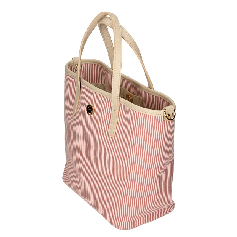 La borsa Marea esprime uno stile fresco e contemporaneo, perfetto per accompagnare le giornate estive. Realizzata in cotone seersucker rigato, un tessuto leggero e traspirante caratterizzato da una texture mossa e tridimensionale, dona al modello un aspetto dinamico e luminoso. Le finiture in pelle martellata aggiungono struttura e definiscono il design con un tocco raffinato. La silhouette capiente e versatile, arricchita da doppi manici e tracolla regolabile, permette una doppia portabilità, a mano o a spalla, adattandosi facilmente ai diversi momenti della giornata. L’interno, completamente foderato, è dotato di una tasca chiusa con zip, ideale per organizzare in sicurezza gli oggetti personali. Leggera, pratica ed elegante, è la borsa ideale per un utilizzo quotidiano tra città, tempo libero e vacanza.