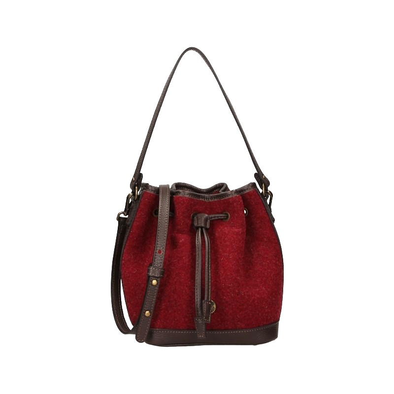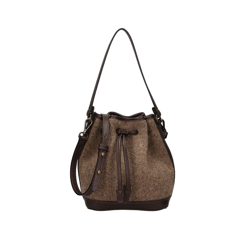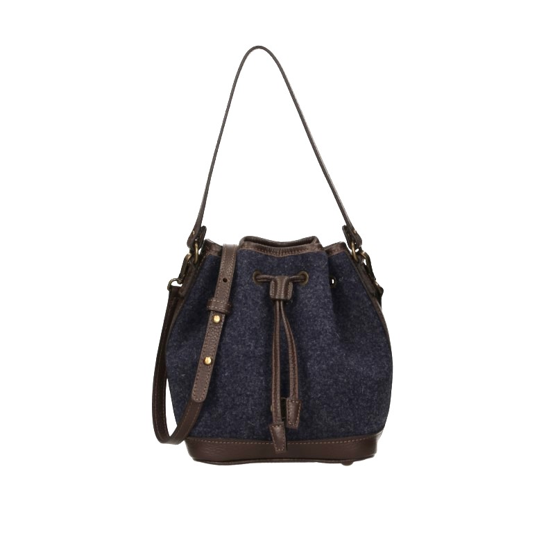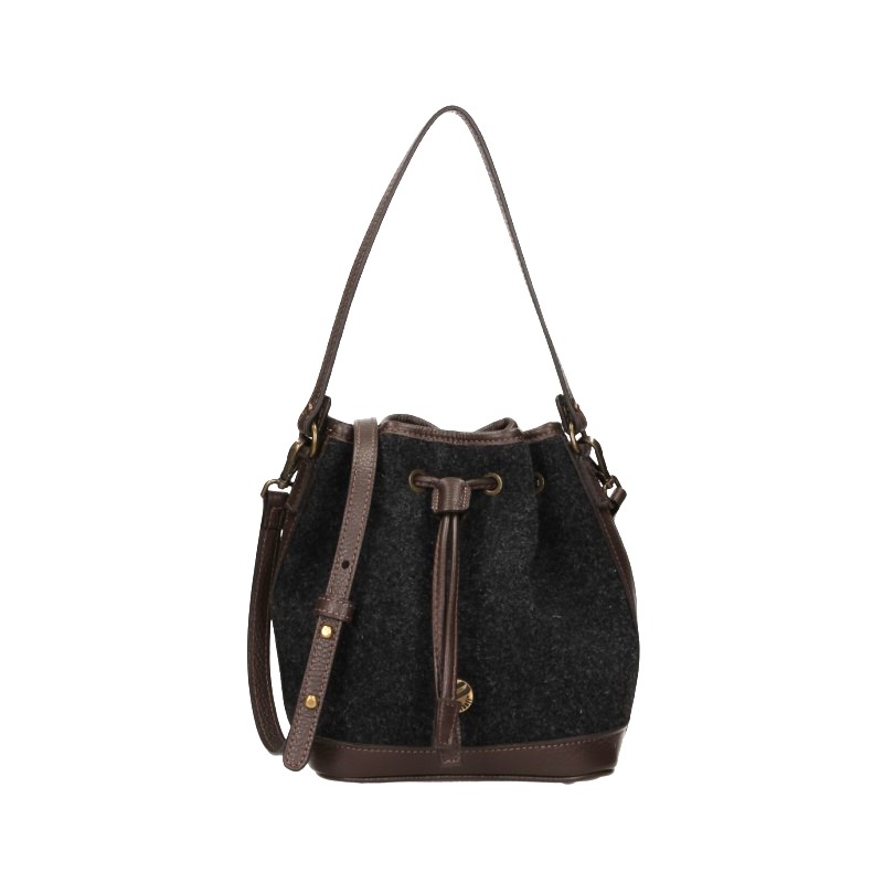 Secchiello piccolo realizzato in Feltro di lana con morbida tracolla in pelle. Chiusura superiore con coulisse in pelle. Pratica seconda tracolla in pelle regolabile e removibile. Dettagli in pelle bovina effetto martellato. Internamente dotata di un comodo taschino chiuso con zip.