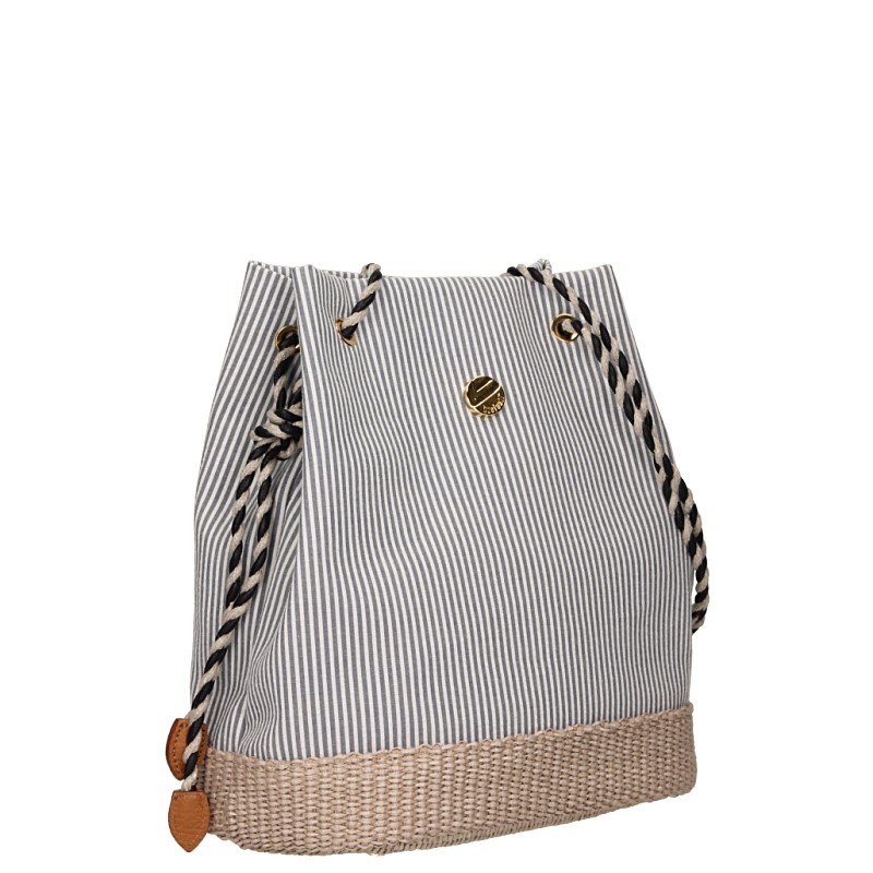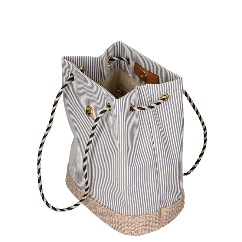 La borsa Isla è l’espressione più estiva e rilassata della linea Salina, ispirata a uno stile naturale e vacanziero. Realizzata in cotone seersucker rigato, un tessuto leggero e traspirante dalla texture mossa, dona al modello un aspetto fresco e luminoso. Il design è arricchito da manici in corda e da un fondo con effetto intrecciato, che richiamano un’estetica naturale e marittima. La forma a secchiello, pratica e capiente, la rende ideale per accompagnare le giornate estive tra città, tempo libero e vacanze. L’interno, completamente foderato, è dotato di una tasca con chiusura zip per organizzare in sicurezza gli oggetti personali. Leggera, distintiva e versatile, è la borsa perfetta per vivere la stagione estiva con uno stile autentico e rilassato.